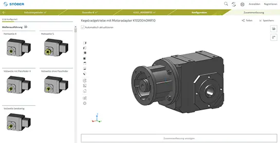 Another service offered by the Pforzheim-based drive specialist is the STOBER Configurator. With this online tool, users can intuitively put together the right drive solution from the extensive product range with just a few clicks. Numerous filters and comparison options are available to them for this purpose. They can sort the series according to the best price, performance or size. Depending on the filter settings, the program automatically displays the best match, which can then be configured precisely. For maximum convenience: Each configuration is visualized by CAD models, which can be rotated virtually. This allows mechanical engineers to check the mounting position of their geared motor in advance, for example. They also have direct access to the associated technical data sheets and corresponding dimensional drawings. They can sign up and request a quote, save the finished selection or share it with other people. This makes selecting the optimum product extremely easy.