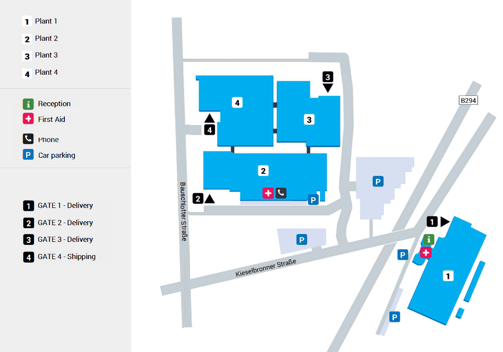 Planifiez l’accès à STOBER et aux différentes usines de Pforzheim. La carte ci-dessous dispose de liens pour planifier facilement votre itinéraire avec Google-Maps.