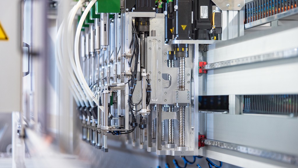 Die Anlage führt die Schrauben automatisch zu und verschraubt pneumatisch. Dazu ist der Automat mit fünf Montageköpfen ausgestattet, die auf einer Zahnstange unabhängig voneinander in X-Richtung verfahren. „Jeden Kopf haben wir mit einer Z- und einer Bohrachse ausgerüstet“, sagt Wittenauer. Für die X-Achse lieferte STÖBER Zahnstangengetriebe der Baureihe ZVPE sowie Synchron-Servomotoren des Typs EZ. Für die Z-Achse kommen ebenfalls EZ-Motoren mit Spindeltrieb zum Einsatz. Damit die fünf Köpfe auf der Zahnstange nicht miteinander kollidieren, haben die STÖBER-Ingenieure einen dreifachen Kollisionsschutz implementiert – die Steuerung überwacht die Positionen zueinander, bei jeder X-Achse wurden die Software-Endschalter mit dem zulässigen Verfahrbereich parametriert, und zusätzlich befindet sich an jedem Kopf ein mechanischer Sicherheitsschalter.