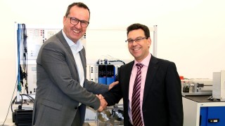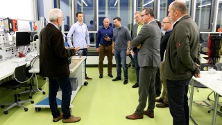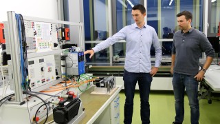 Daniel Lohse, Director Business Development, und Thilo Dauth, Applications Engineer, griffen den Absolventen bei ihrer Abschlussarbeit mit ihrem Know-how tatkräftig unter die Arme. Initiiert und betreut hat diese Arbeit Roland Hasenohr, Lehrer und Projektleiter an der Heinrich-Hertz-Schule. „Grob erklärt geht es dabei um eine Motorwelle, an der eine Stahlscheibe als Schwungmasse angebracht ist“, erläutert Thilo Dauth. Läuft der Motor, dann rotiert die Masse mit bis zu 6.000 Umdrehungen in der Minute. Wird der Antrieb gestoppt, läuft die Scheibe weiter. Wie kann nun die in kinetische umgewandelte und gespeicherte Energie sinnvoll genutzt werden? „Das ist insbesondere im Hinblick auf die Elektromobilität ein spannendes Thema“, sagt Thilo Dauth. Denn beim Ausrollen wird Energie zurückgewonnen und im Akku gespeichert. Diese lässt sich später wieder für die Fahrt oder zum Beschleunigen nutzen. Mit dem Modell können zum Beispiel Schüler spannende Versuche durchführen.