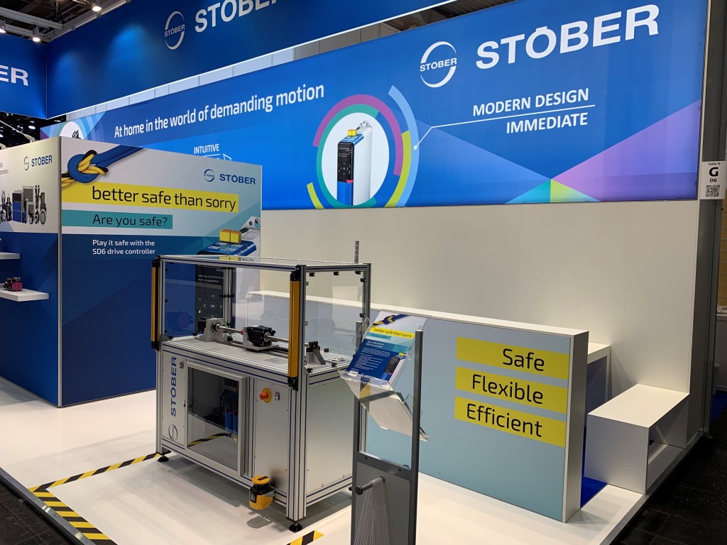 Seine Automationsstärke zeigte der Antriebsspezialist auf dem Messestand anhand eines individuellen Scara-Roboters, dessen Achsen zentral über den STÖBER Motion Controller MC6 mittels EtherCat angesteuert werden. Die eigenständige Antriebs- und Motion-Control-Architektur kann komplexe Mechaniken sicher und leistungsstark handhaben.